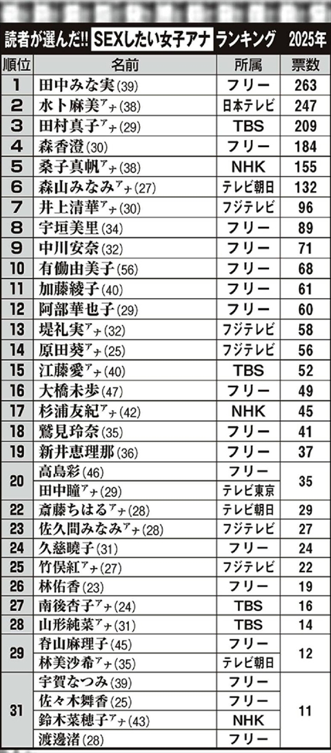 【速報】SEXしたい女子アナ、2025年最新版が発表されるwwwwwwww