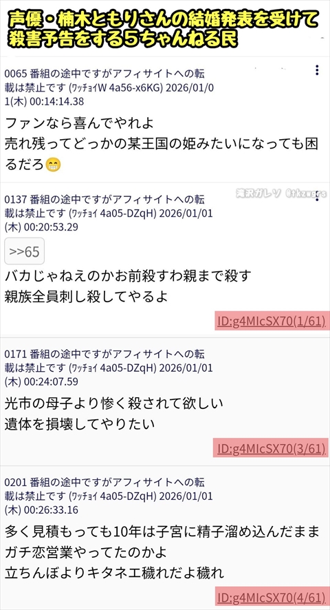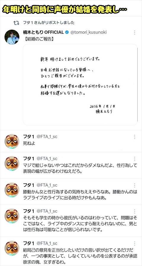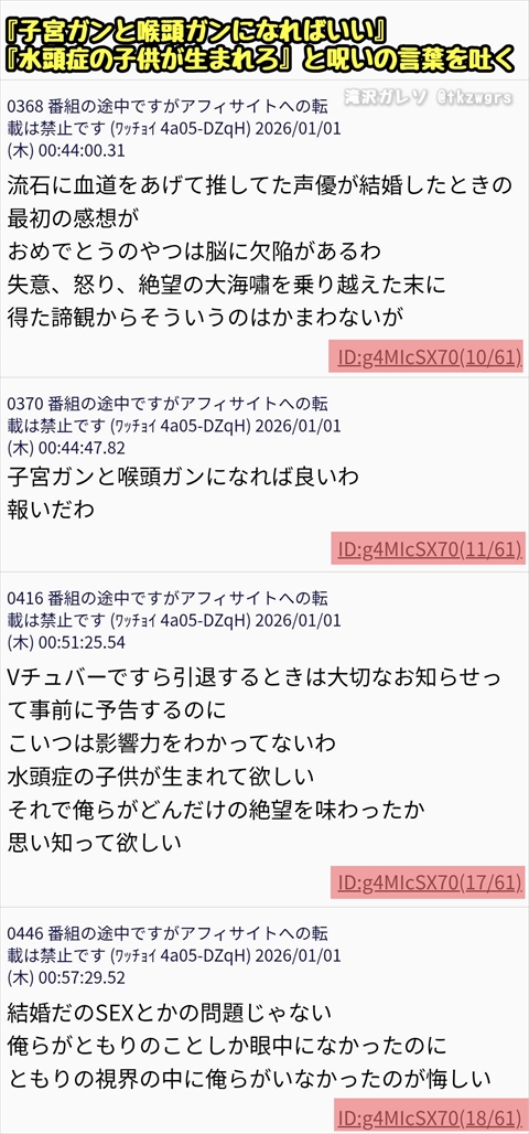 結婚発表した人気声優さんに殺○予告・・・(※画像あり)