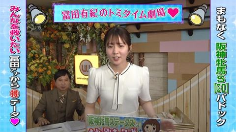 ・冨田有紀アナ ブラ紐がはみ出す競馬予想!!【GIF動画あり】