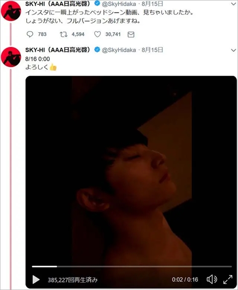 未成年女性アイドルを自宅に呼び出し個人レッスンした(肉体関係は無いと主張)と炎上し、謝罪したSKY-HI(日高光啓)。まだまだ事件は続いており、過去には自殺したアイドル・月乃のあさんとも関わりがあったりで、その事件も再燃しています。その月乃のあさんが、反応したのが、SKY-HIがベッド動画を間違えて全体公開したもの。当然、横に女がいると話題になり、慌てて、話題にする為にわざと上げたと苦しい言い訳をしていたのですが…。まあ昔から女癖の悪さは有名だったらしく、まだまだ余罪が出てきそうですね。