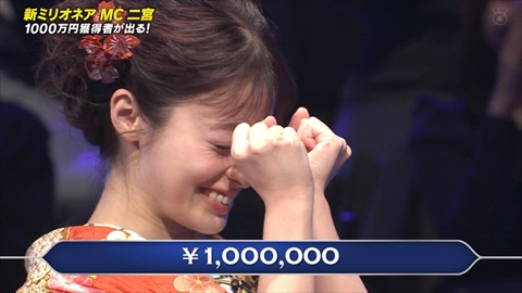 ミリオネアがミリオネア優勝とか誰得過ぎ。 どうせドラマの打ち上げ、差し入れで全部使いました〜オチでしょ?今のフジにそんな余力あるわけない