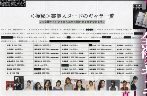 芸能人40人ヌ●ドのギャラ一覧リスト流出!篠田麻里子、加護亜依ならAVデビュー…