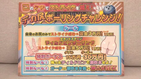 素人バラエティ ボーリング女子が己のケツでストライクを狙え!デカ尻ボーリングチャレンジ!ローションぬるべちょ滑走快感で肛門ヒクヒク!ガータ―出したら即ハメ中出し!